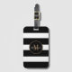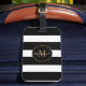 Etiqueta De Bagagem Monograma Elegante Black White Strips Nome Dourado