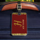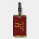Elegante, mínimo, vermelho, marrom, dourado, etiqueta inicial de bagagem. Moderno personalizado, monograma, design de script. Você pode alterar a edição do design com nomes, inicial.