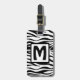 etiqueta de bagagem com correia de couro: um monograma quadrado em fundo de padrão zebra preto e branco