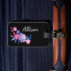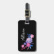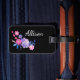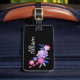 Placa de Bagagem com fundo preto e desenho floral para acentuar o monograma personalizado