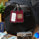 Etiqueta De Bagagem Monograma geométrico chave grego vermelho chique