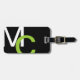Duas grandes letras em branco e em verde para suas iniciais em um fundo preto.