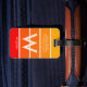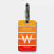 Etiqueta de bagagem pessoal com faixas largas em cores brilhantes do nascer do sol. Monograma centrado grande e nome associado. Uma tipografia simples e limpa. Totalmente personalizável. A ideia de presente de excelente para um entusiasta especial ou para você. Ideal para identificar sua bagagem pessoal.