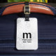 Etiqueta De Bagagem Monograma Simples Faux Silver Black Bold