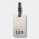 Simples e elegante design de etiqueta de bagagem personalizável, com falso fundo prateado e preto, monograma negro e negrito.