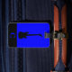 Etiqueta de bagagem com um violão elétrico preto sobre fundo azul, inicial(is) monograma(s)/nome num quadro de monograma de faixa preta, nome e endereço em fundo azul. Personalize com as informações de nome, nome e endereço do monograma usando os modelos fáceis. A cor da fonte, o estilo da fonte, o tamanho da fonte e a cor azul do plano de fundo são personalizáveis.