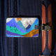 Este design esplêndido retrata uma paisagem colorido de montanha com céu nublado e colinas rolantes em texturas e cores arrojadas como azul, lacre, ciano, ouro e laranja.