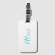 Etiqueta De Bagagem Name Calligraphy Script Plain Simple White Blue