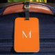 Etiqueta de bagagem com fundo de cor sólida neon laranja e fonte branca .design simples e flexível de Alma Wad .Personalize-a com seu monograma agora. ________________ - Cor laranja - a cor do Sol - é frequentemente associada ao sinal de Leo. Você pode considerar isso ao escolher um presente.