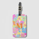 Etiqueta De Bagagem Neon Retro Floral Rosa