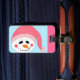 Uma mala engraçada com um bonitinho bonitinho de neve de chapéu rosa, expressão fofa! Personalizar conforme desejado.