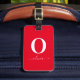 Etiqueta De Bagagem Nome de roteiro de monograma personalizado vermelh