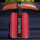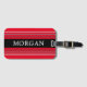 Etiqueta De Bagagem Nome em White, Black & Cinza Stripes, Red