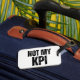 Identify your gear quickly at the baggage claim. Features the "Not My KPI" typography in a stark, clinical layout for the modern business traveler.