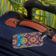 Padrão Funky Boho retro mandala com caixa de texto azul - personalize com nome ou mensagem especial