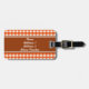 Etiqueta De Bagagem Padrão Monograma Laranja e Gingham Branco