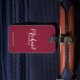 Adicione um toque pessoal ao seu casamento com a etiqueta de bagagem de padrinhos de casamento personalizada. Esta etiqueta de bagagem apresenta o nome personalizado dos padrinhos de casamento no estilo de letra branco moderno da escrita e monograma no estilo de letra vermelho-burgundy vermelho da escrita como fundo com o título e a data do casamento no estilo de letra branco do sans moderno em fundo vermelho-burgundy. Também perfeito para o melhor homem, pai da noiva e mais.