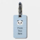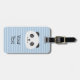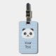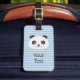Ilustração da cabeça de um Panda fofo. Na parte traseira, há uma área para o seu nome e número de telefone celular. Não é aconselhável mostrar o seu endereço durante as férias.