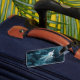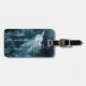 Pegasus o cavalo alado voa com sua bagagem, etiqueta de fantasia. Adicionar suas próprias informações
