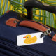 Pato amarelo bonito, como um cómico ou uns desenhos animados. Pato de borracha.