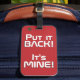 Etiqueta de Bagagem Patriótica Funny National Flag de Marrocos com a bandeira nacional de Marrocos colorida que cobre a frente da etiqueta. Engraçado texto "Coloque de volta! É MINE" está escrito sobre as cores da bandeira. O texto é totalmente personalizável usando o recurso "Personalizar!". Outro lado da etiqueta está reservado para suas informações. Esta super divertida Etiqueta de Bagagem de Marrocos é o companheiro perfeito para a sua bolsa de viagem e o presente adorável para qualquer ocasião. © PaísesDoMundo