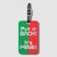 Marca Nacional Burkina Faso Marca Patriótica Bagagem Patriótica Funny com as cores da bandeira nacional Burkina Faso que cobrem o lado frontal da etiqueta. Engraçado texto "Coloque de volta! É MINE" está escrito sobre as cores da bandeira. O texto é totalmente personalizável usando o recurso "Personalizar!". Outro lado da etiqueta está reservado para suas informações. Esta super divertida Etiqueta de Bagagem Burkina Faso é o companheiro perfeito para a sua bolsa de viagem e o presente adorável para qualquer ocasião. © PaísesDoMundo