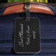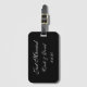 A etiqueta de bagagem personalizada é mostrada em preto-e-branco com texto de Recem casados. Personalize esta etiqueta e mude os nomes e a data para a sua com esta modelo. Você pode até mudar de cor.