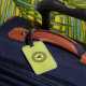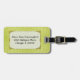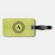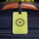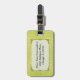 Linda etiqueta de bagagem, com gráficos de uma aparência de couro de avestruz chartreuse. Uma área de texto elegante emoldurada, na frente, e gráficos de uma área de monograma de arame redondo em tom dourado, no verso da etiqueta, tem texto personalizado preto pronto para personalizar. Maneira elegante de distinguir sua bagagem das demais, e facilmente identificável para não ficar perdida por muito tempo.
