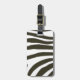 A pintura de faixas de zebra brancas e pretas decora a frente dessas etiquetas de bagagem. Uma pintura da zebra do tamanho do cheio em escala menor é impressa no verso. Há um marcador de posição modelo no verso do seu texto personalizado.