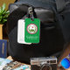 Adicione seu próprio nome ou seu nome e logotipo do clube de golfe/clube de campo a esta etiqueta de bagagem. Você escolhe fonte de texto, tamanho e cor de fundo para a marca.