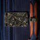 Possui um design de ouro abstrato marmoreado sobre fundo preto. Personalize com um nome na frente e um nome e endereço na parte traseira.