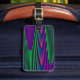 Esta incrível etiqueta de bagagem apresenta uma imagem digitalmente criada que se assemelha a uma série de ondas suaves que ripam contra uma costa calma. As ondas são néon vívidas, de tons verdes, cor-de-rosa e azuis, e têm uma qualidade 3D. Há um texto personalizável na parte traseira da etiqueta de bagagem, permitindo que você o personalize com seu nome e qualquer outro texto de sua escolha.