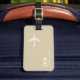 The front side of the tag features a simple and graphic image of a white plane soaring against the beige background, capturing the spirit of adventure and wanderlust. To make it uniquely yours, we offer customization options with your initials and full name elegantly displayed in a timeless serif font. This personal touch not only adds a distinctive flair to your luggage but also makes it easy to identify in a sea of bags.