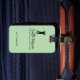 Pale green background, personalized with his name and custom words (Golf Club name, a slogan, or any other info). A cool and elegant design for a golfer to travel in style.