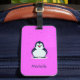 Etiqueta De Bagagem Pinguim fofo de nome personalizado a rosa