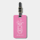 This elegant monogram golf bag or luggage tag features a simple white outline of a golf bag filled with clubs against a vibrant pink background. The design includes a classic serif font initial monogram on the bag, blending seamlessly into the overall look. Below the monogram, the full name is displayed in a matching white serif font for a clean and stylish touch.