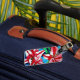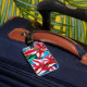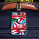 com a arte original de uma pintura aquosa de Sacha Grossel, de uma flor líbia brilhante, rosa-quente, do dia. Este assunto botânico tem pétalas cor-de-rosa intensamente contra fundo azul-céu num design floral colorido. A visão macro e aproximada das flores é popular entre amantes de design florais em todos os lugares.Essa etiqueta de bagagem pode ser personalizada para incluir seus detalhes pessoais no verso.