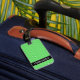 Características que deste design do Tag da bagagem um envolvimento do teste padrão muito verde pontilha/circunda. Igualmente caracteriza um nome personalizado na parte dianteira, e personalizou detalhes do contato na parte traseira.