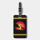 Ilustração do pôr do sol africano com sol vermelho, girafa e decoração da silhueta de árvore em fundo preto com faixas. É possível mudar a cor de fundo e adicionar uma diferente à design com sua escolha.