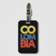 Belo retrô, Vintage Colombia, Etiqueta de Bagagem com uma letra clássica. Compre agora para seu amigo colombiano ou namorada. Excelente de presente no aniversário ou no Natal.