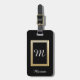 Tag da bagagem das mulheres ou dos homens. Negócio/quadro elegante executivo do ombre do ouro do preto e do falso. Monograma com nome e endereço, telefone, email na parte traseira.