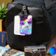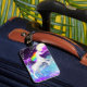 Uma etiqueta de bagagem com um unicórnio arco-íris.