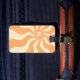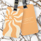 Etiqueta de bagagem com um sol cor de laranja pálido e retrô com raios radiantes e o seu monograma inicial.