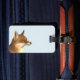 Ilustração de uma raposa. Na parte traseira, há um ícone de pessoa e telefone com nome e número de telefone celular que você pode mudar facilmente. Não incluí uma alocução, pois não é aconselhável.