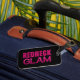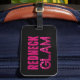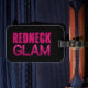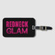 Divertida etiqueta para bagagem para "garotas do interior" que amam viver alto e luxuoso! Texto "Redneck Glam" em rosa com a aparência de brilho rosa choque no glam... fundo preto.