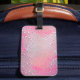 Etiqueta de bagagem rosa-branca