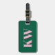 Etiqueta De Bagagem Rosa Moderno Verde Monograma Inicial Personalizado