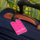 Uma sutil e elegante "Pinças de canguru" e uma maldita etiqueta de bagagem com formato de carapaça, com efeito de fita, em matizes cor-de-rosa quente. A "Pata de canguru" é uma planta nativa impressionante do oeste da Austrália, este padrão foi inspirado na interessante natureza estrutural "Patas de canguru". Muitas variedades de patas de canguru são cultivadas em jardins por toda a Austrália. Personalize o reverso desta marca com o seu nome e endereço. Este padrão e etiqueta originais foram desenhados por Sarah Trett.
