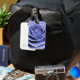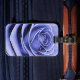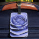 Uma rosa azul vibrante, suas pétalas em plena floração e inflorescência graciosa.