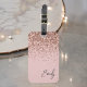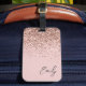 Etiqueta para Bagagem Monograma Nome Rosa Dourado - Rosa Bege Brilho Glitter Feminino. Isto faz o presente perfeito para alguém que viaja com estilo para o aniversário de 16 anos, casamento, chá de noiva, chá de bebê ou despedida de solteira.